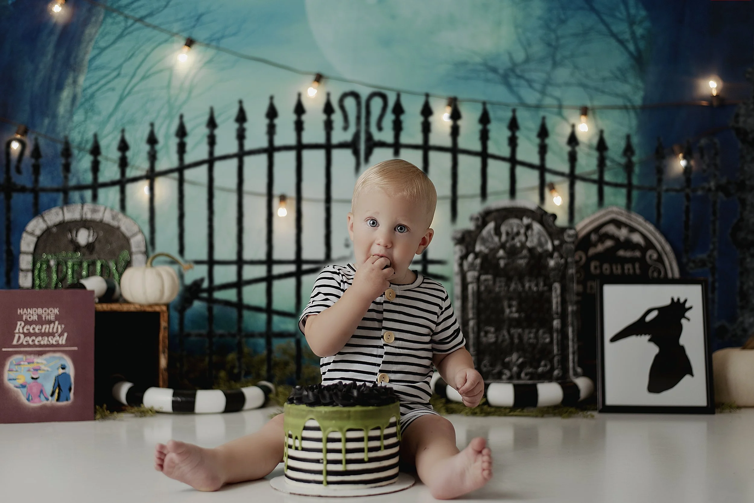 Cake smash sessions are up to an hour long and include an additional outfit before the cake smashing for more formal 1 year images. Session includes cake, outfit and decorations of the theme of your choice.